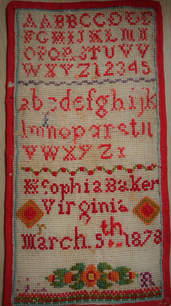 I love old samplers. They often appear almost ghostly, having faded so far into time. Others arrive with freshly-lipsticked smile, all bright and gleaming.