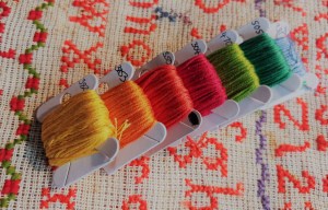I was playing around while working on my reproduction of H Sophia Baker, 1878, trying out the colour palette and made this adaptation. Antique reproductions can be stitched exactly, or you can adapt, change and recreate elements of the original into a new design.