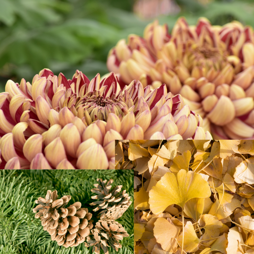 I couldn’t complete one of these designs without including a flower, and the most autumnal flower to my mind is the Chrysanthemum. Represented in a stylised fashion in my design, this flower is native to East Asia and Europe, but is cultivated all over the world. Other plants you can find hiding in this design are other maple and pine varieties, and the Gingko, with its wonderful shape.