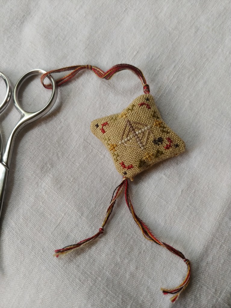 - Use a sharp embroidery needle for the whip-stitches when constructing the biscornu. I find this helps me just catch the backstitches, not the fabric underneath.