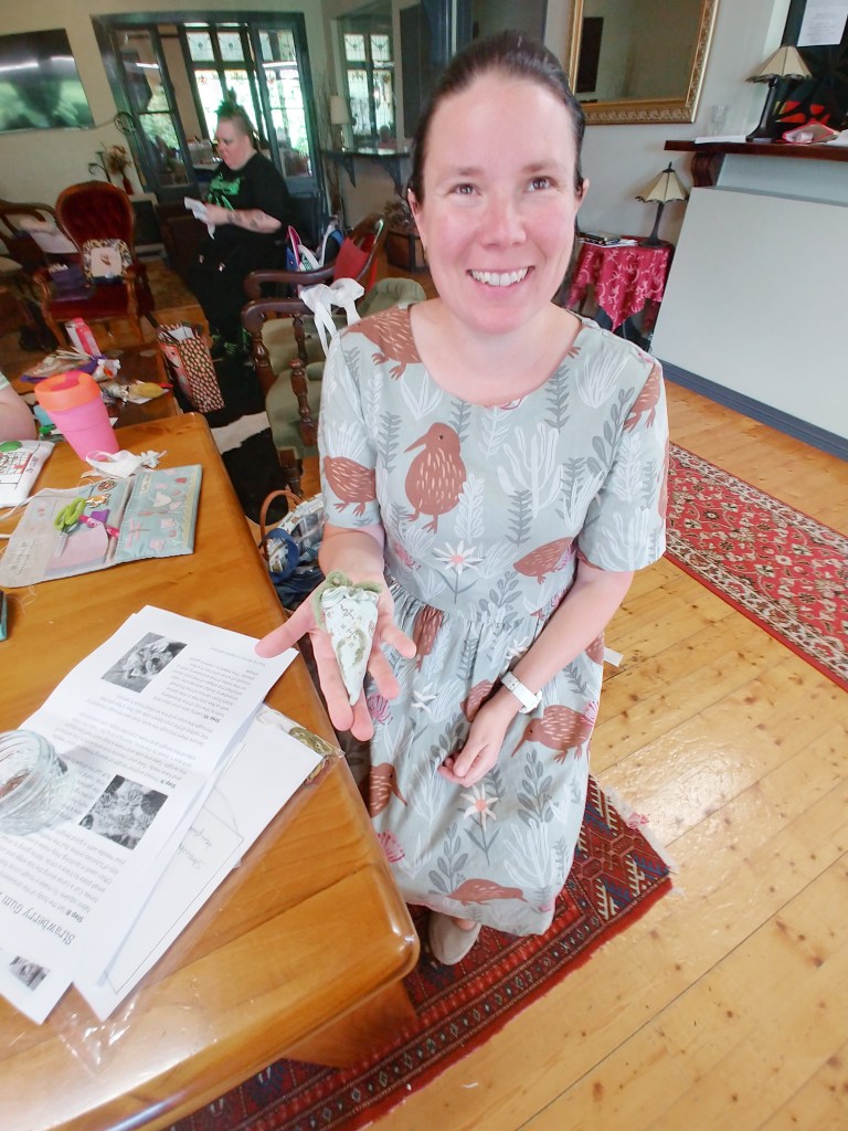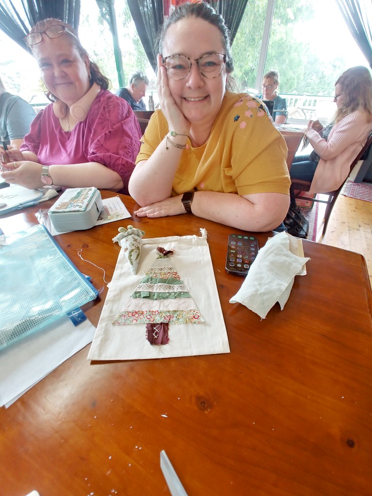 An extra thanks to Ginger Stitch: https://www.etsy.com/uk/shop/GingerStitchAu for donating fabulous needleminders for everyone, and my very talented aunt Lyn Kabanoff for her textile art donations as very lucky doorprizes. And a special thanks to all the helpers and all the attendees: this retreat is something special because of you! My sincere thanks for your kindness, creativity and companionship…