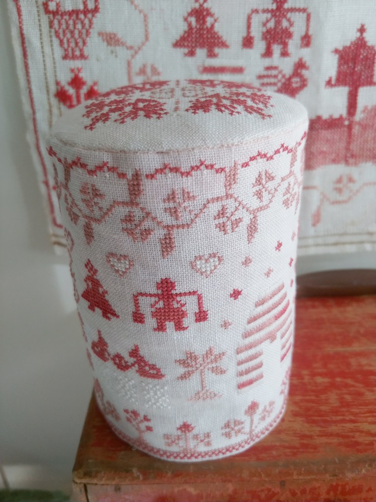 The chart contains both the complete antique reproduction, and the chart for the drum, so that you can stitch your preference (or both, if you’re keen!). While the drum pattern makes quite the chonky drum – you could also finish it flat by framing, if you prefer. But I must say, there’s nothing quite like turning your 2D stitching into a 3D object – there’s something so magical about the process!
